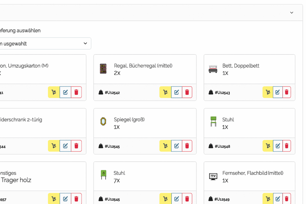 Im Kundenkonto siehst du jederzeit deine Bestände. Du kannst einzelne Gegenstände oder ganze Boxen zurückbestellen – mit frei wählbarem Liefertermin.